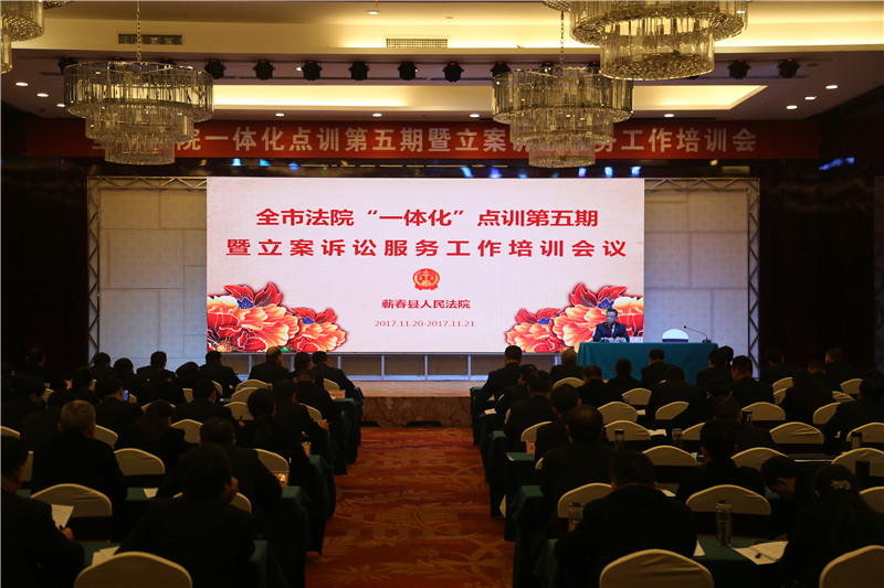 (图/文:胡珊 编审:叶学军)11月20日下午,黄冈市法院一体化点训第五期暨立案诉讼服务工作培训会在蕲春召开。市中院党组书记、院长肖笛等领导、各县市区法院院长、相关业务庭庭长及立案部门负责同志参加会议。会议由蕲春法院党组书记、院长赵万平主持,蕲春县人大常委会党组书记、常务副主任江勇,市中院党组成员夏冬华先后在开班仪式上致辞。