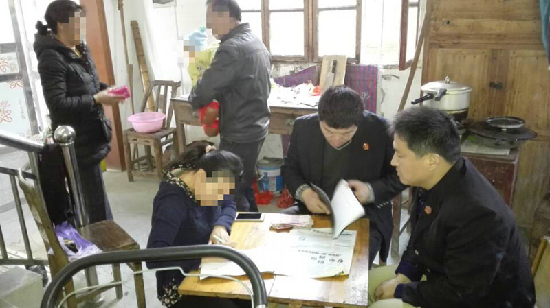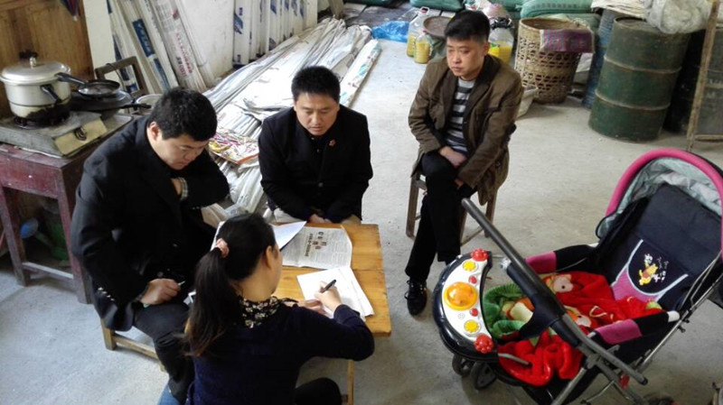 考虑到尚处哺乳期的原告行动不方便,12月5日,法庭带着被告方到原告租住地展开巡回审判。进屋一看,承办法官被房内杂乱的景象惊呆了,本来准备用于巡回审理的国徽、当事人标示牌根本没有地方放置。原告带孩子租住的房子很小,下面是房主家放置货物的地方,只有一个不到一米长宽的小方桌和临时搬来的几把椅子。承办法官因陋就简,两方当事人及亲属围着小方桌开始了一场特殊的巡回审判。