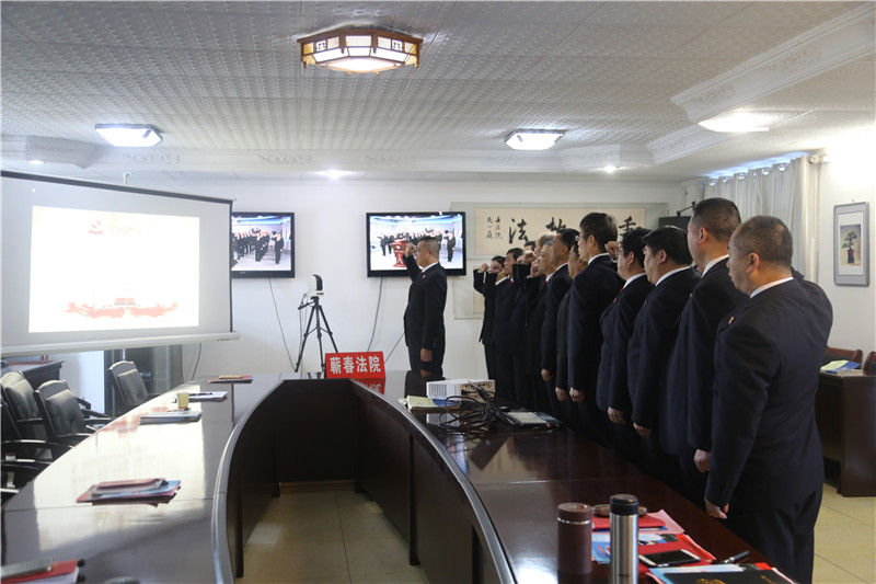 上午十时许,全院44名员额法官在院长赵万平的带领下,举行宪法宣誓仪式,他们身着制服,胸佩法徽,右手握拳,庄严宣誓。法官们一致表示,将更加敬畏法律,敬畏手中权力,自觉做到“心中有法不妄为”,坚持为民司法、公正司法,牢记肩上使命,切实履行宪法法律赋予的神圣职责,为“五个蕲春”建设提供有力的司法保障。